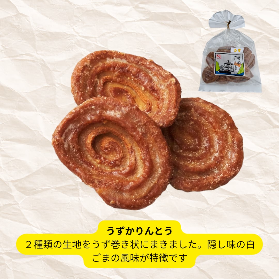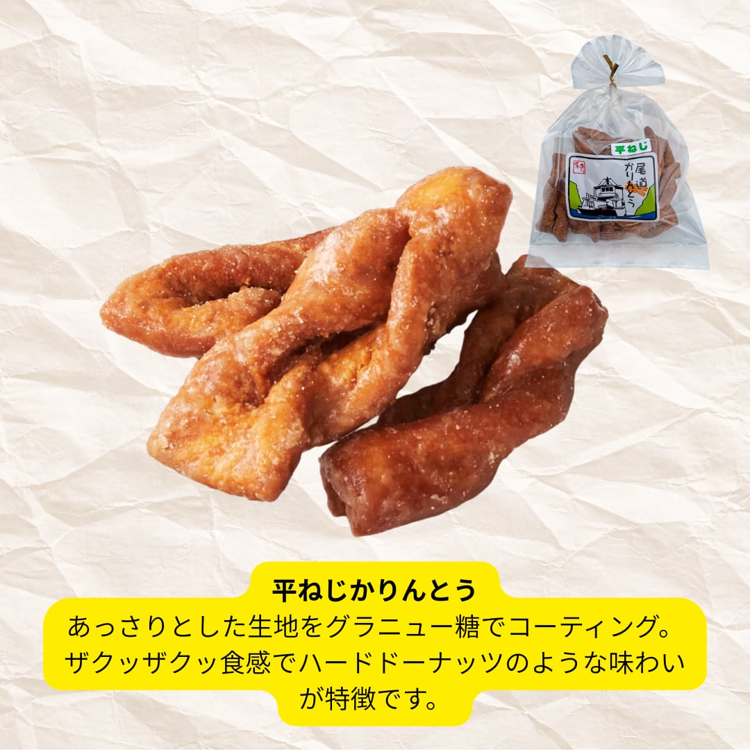 一度に楽しめる人気4種セットです。製菓宮本のかりんとうは、一般的な「硬い」イメージとは違い、生地に卵を練り込む独自製法により、ザクッと軽やかな食感が特長。